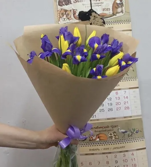 Букет 15 ирисов 10 тюльпанов Гретта Вы можете заказать в интернет-магазине цветов Клумба или забрать самостоятельно в магазине г. Екатеринбург, ул. Машинная, д. 11. Работаем круглосуточно.