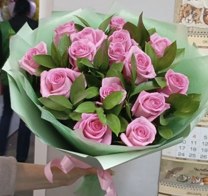Букет 15 розовых роз Россия Аква в крафте Лисет Вы можете заказать в интернет-магазине цветов Клумба или забрать самостоятельно в магазине г. Екатеринбург, ул. Машинная, д. 11. Работаем круглосуточно.