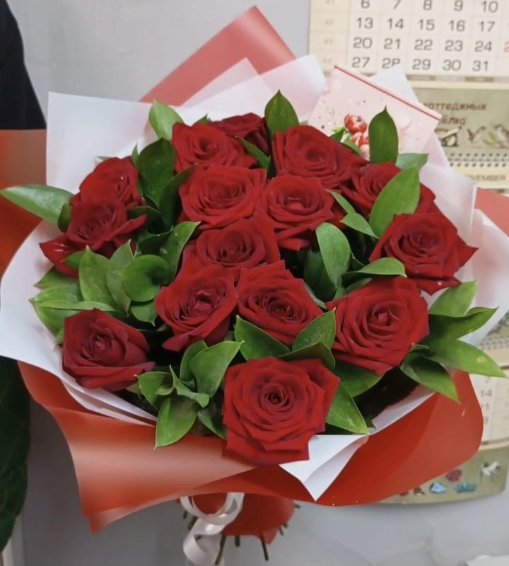 Букет 15 Уральских красных роз Гран при в крафте Сэйнн Вы можете заказать в интернет-магазине цветов Клумба или забрать самостоятельно в магазине г. Екатеринбург, ул. Машинная, д. 11. Работаем круглосуточно.