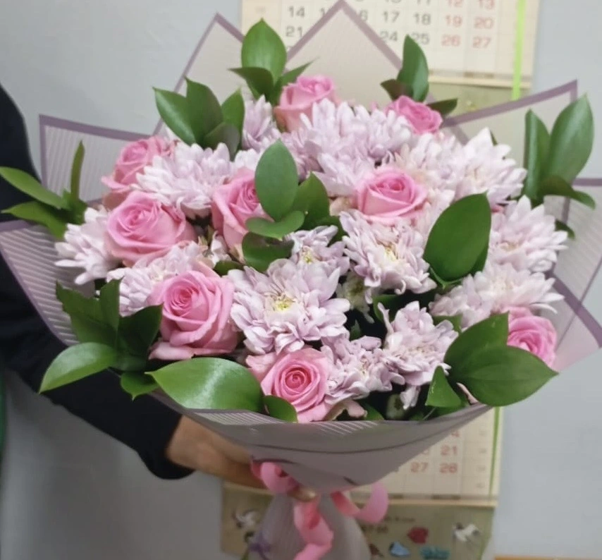 Букет роза с хризантемами Аури Вы можете заказать в интернет-магазине цветов Клумба или забрать самостоятельно в магазине г. Екатеринбург, ул. Машинная, д. 11. Работаем круглосуточно.
