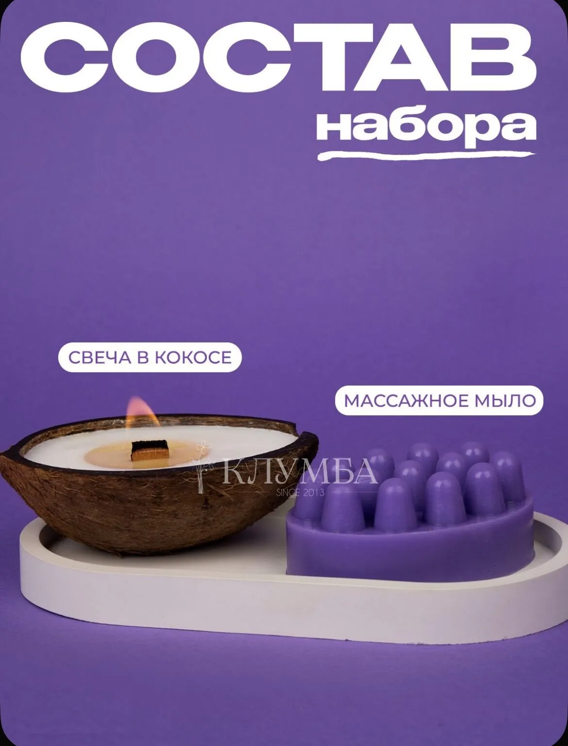 - свеча в кокосе с натуральным воском ручной работы с ароматом лаванды